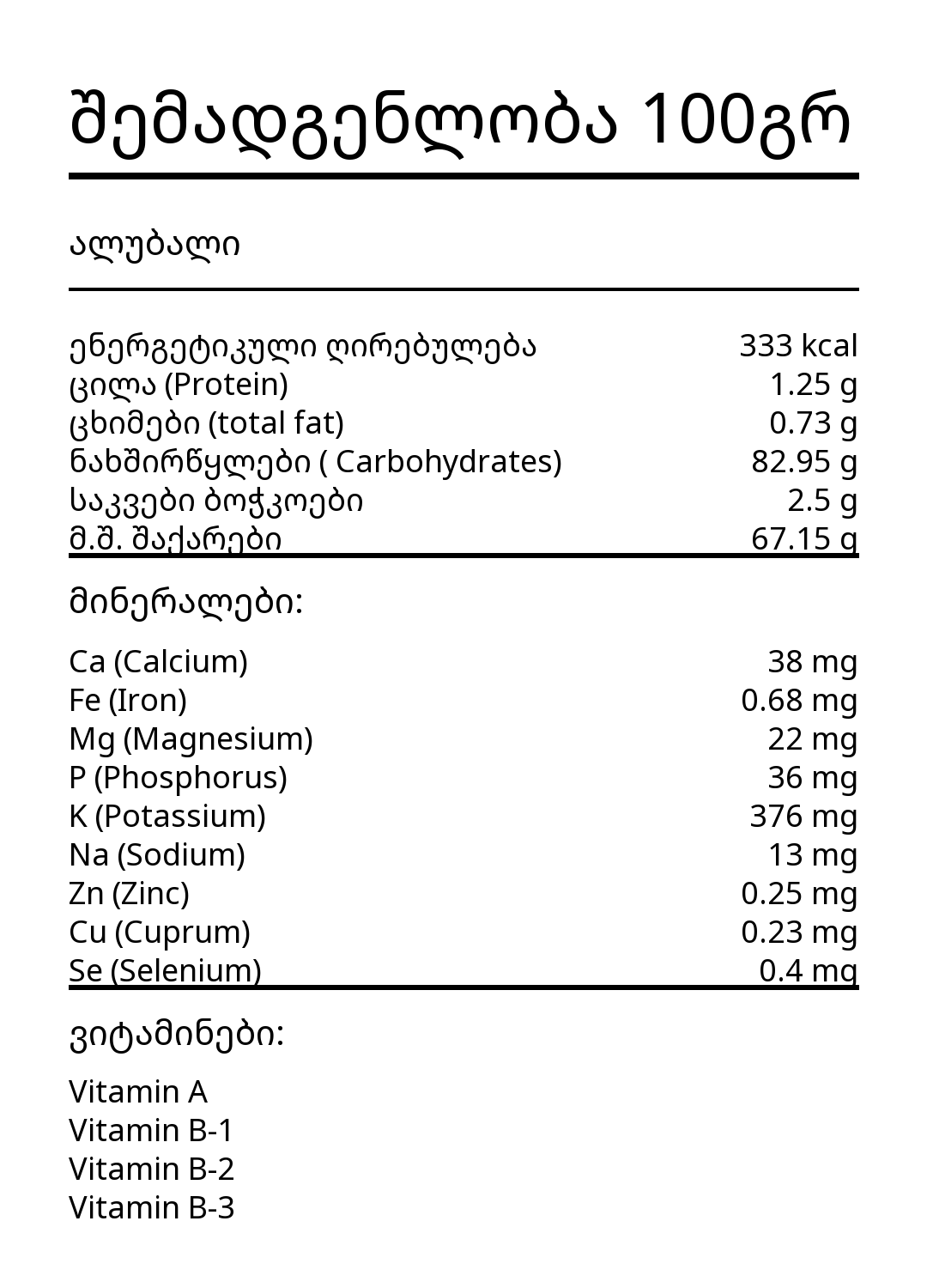 რაოდენობა: ალუბლის ჩირი