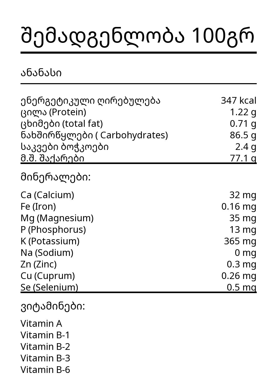0.05კგ, 0.1კგ, 0.5კგ, 1.00კგ