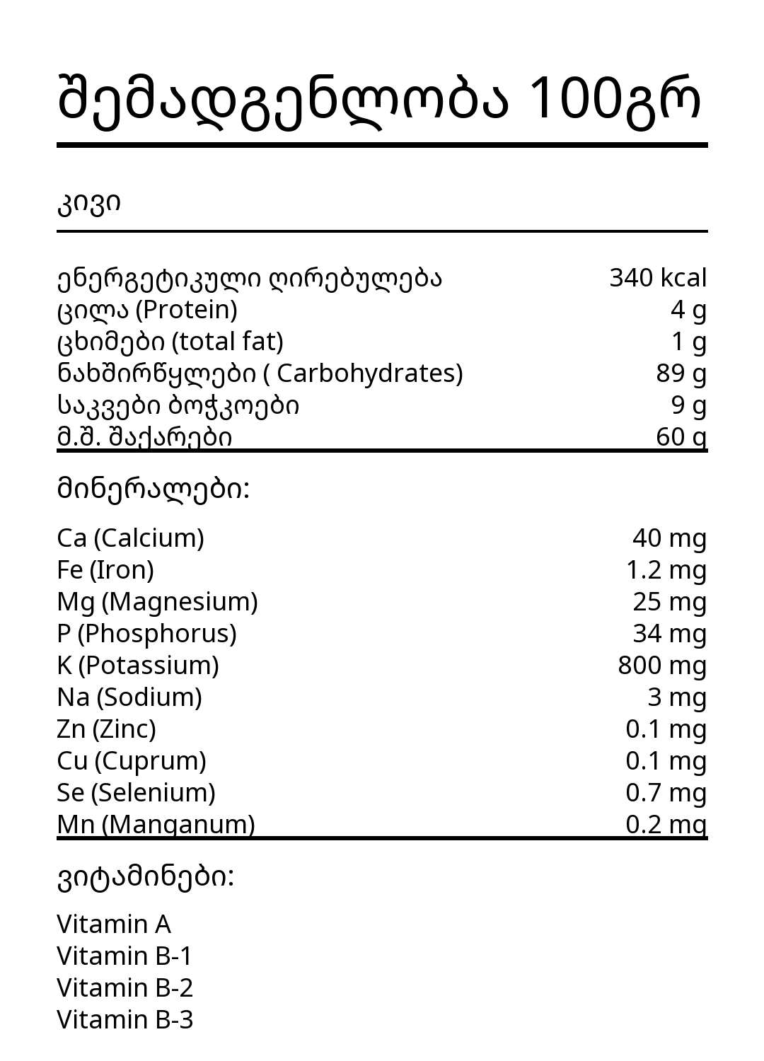 რაოდენობა: კივის ჩირი