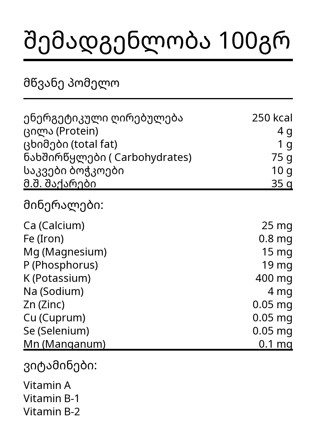რაოდენობა: პომელოს ჩირი
