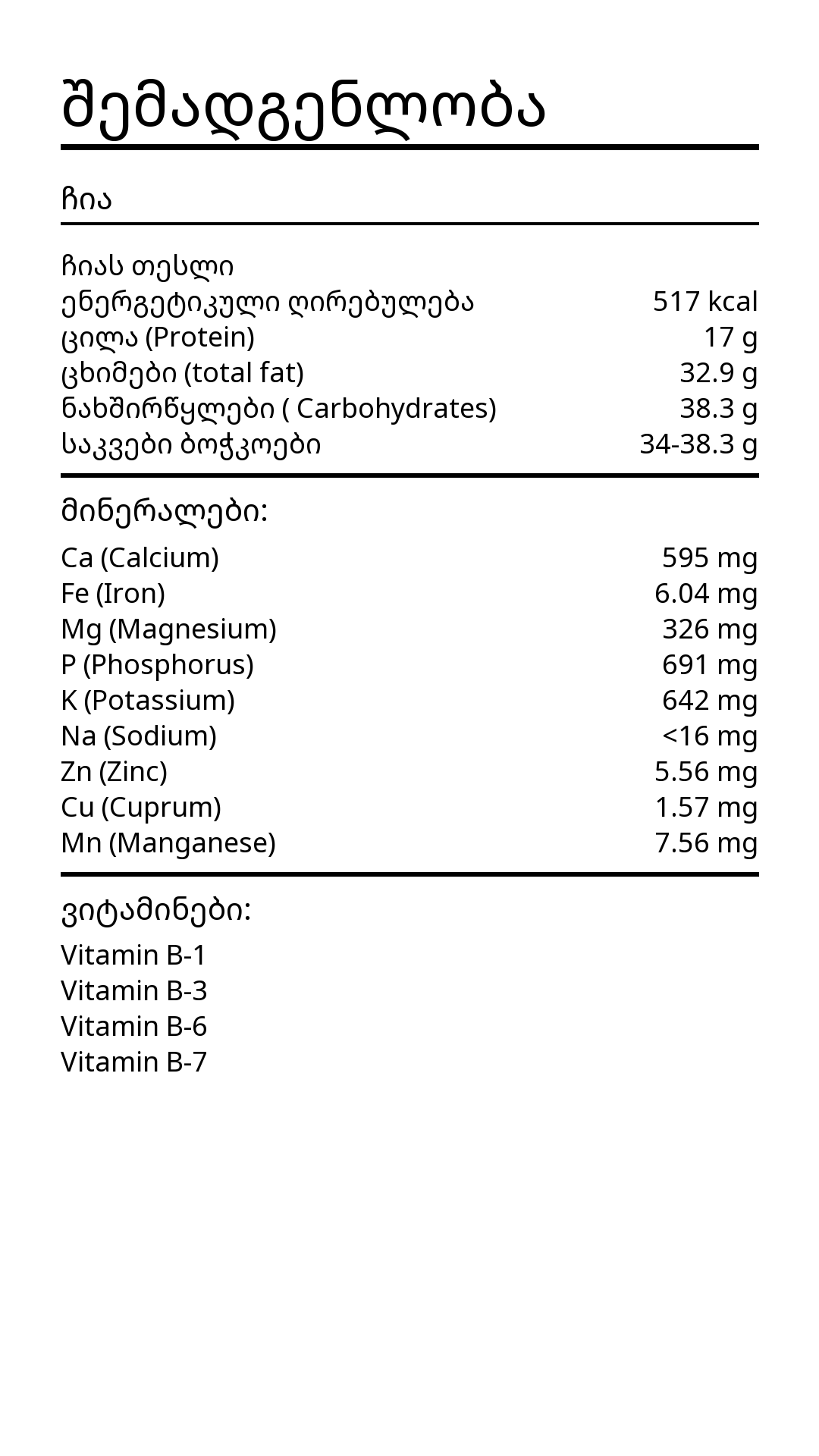 რაოდენობა: ჩიას თესლი